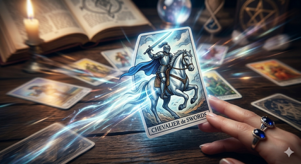 L’apparition d’un Chevalier signale une transition. C’est une invitation à sortir de votre zone de confort. Ils représentent le passage de l’idée (Valet) à l’expérience vécue par l’engagement total.
